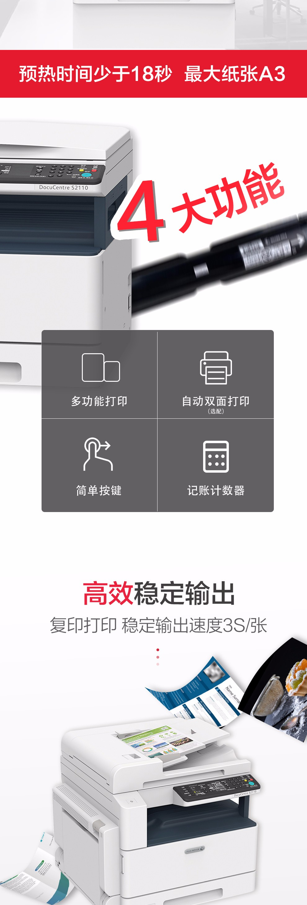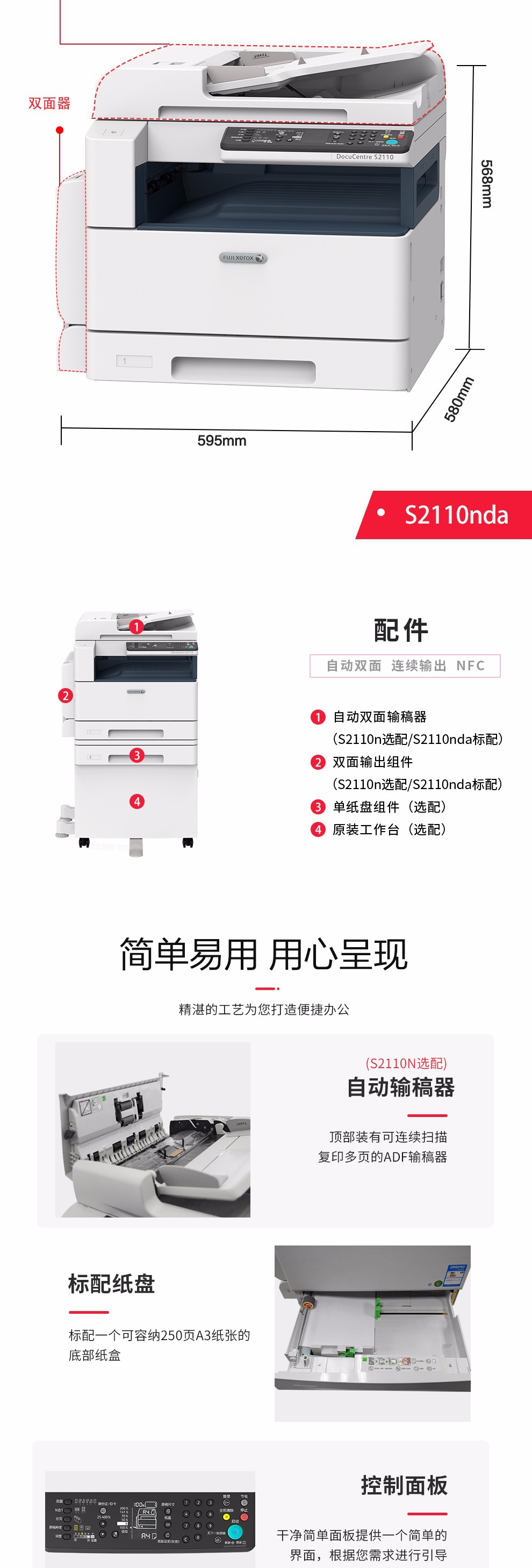 富士施乐S2011升级施乐S2110n_S2110nda多功能一体机a3a4激光打印机复印机网络 网络打印 单纸盒+旁路输纸