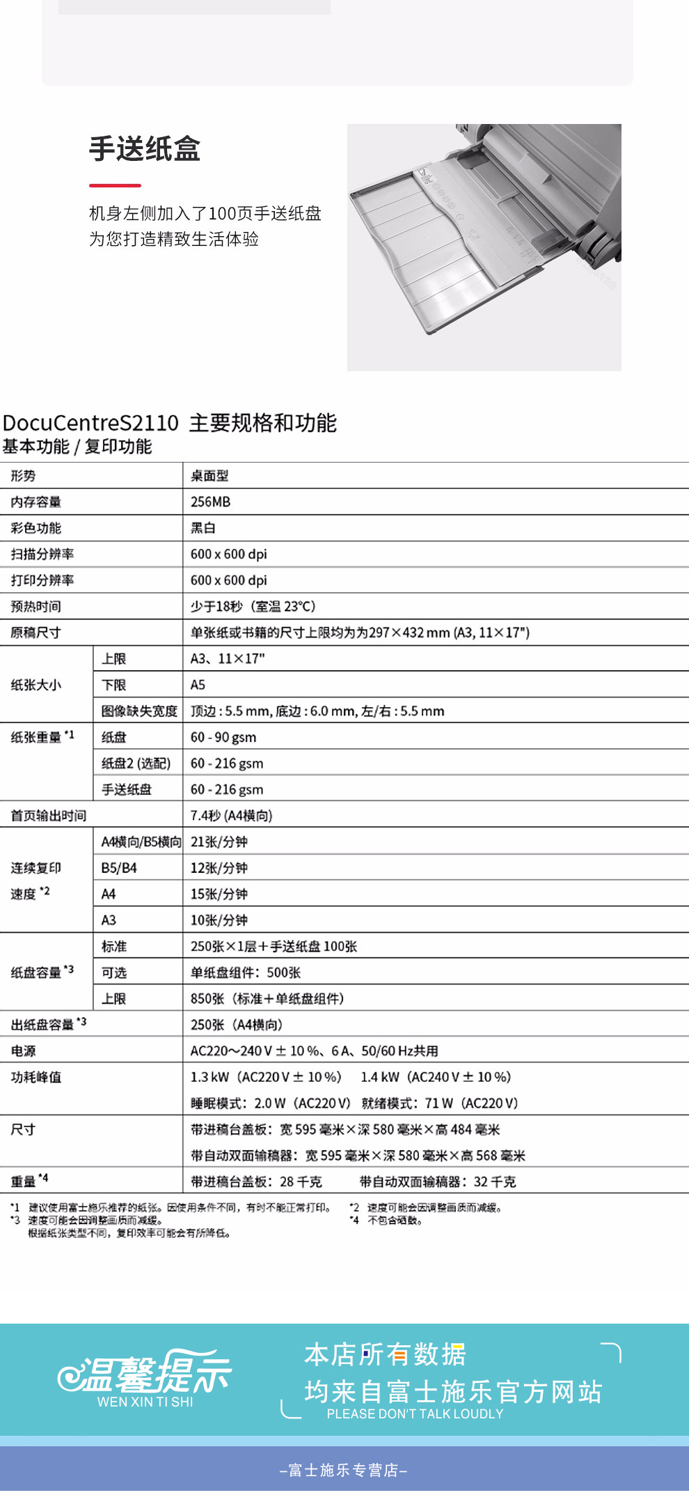 • 富士施乐S2011升级施乐S2110n_S2110nda多功能一体机a3a4激光打印机复印机网络 网络打印 单纸盒+旁路输纸