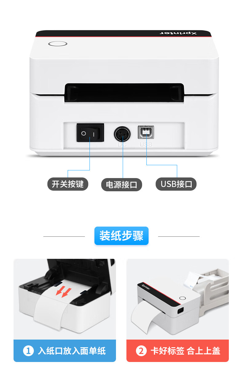 芯烨(XINYE)XP-D362B 80mm热敏标签一联快递单专用电子面单 USB 仓储物流快递单条码不干胶打印机