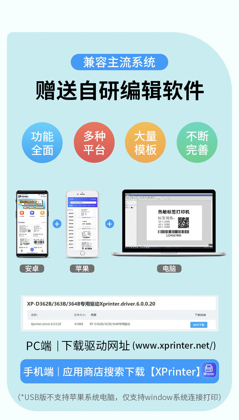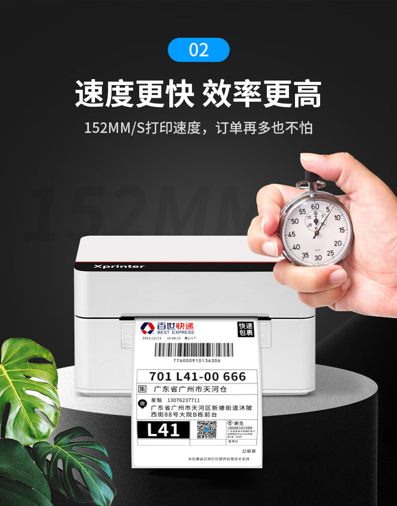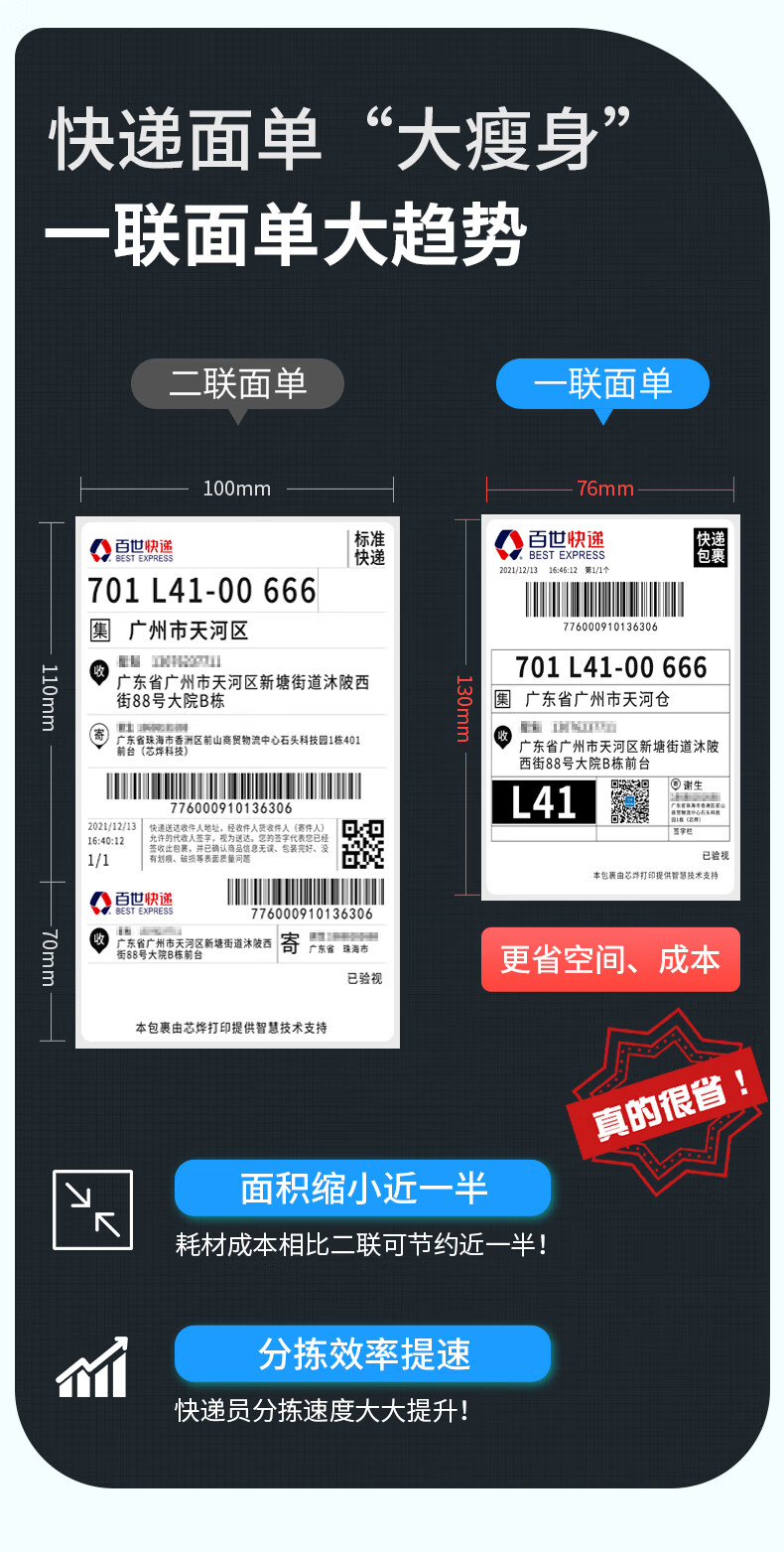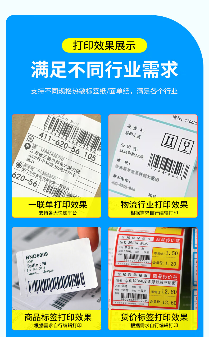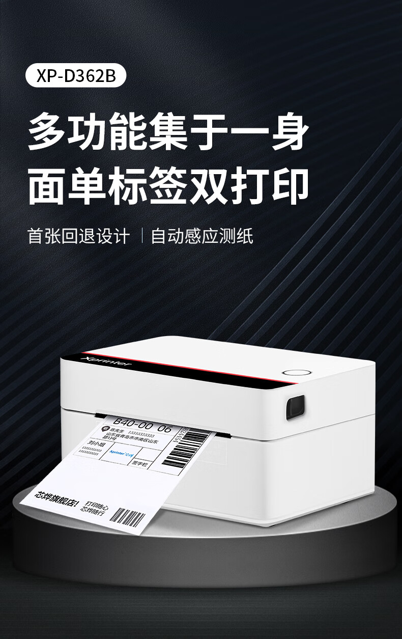 • 芯烨(XINYE)XP-D362B 80mm热敏标签一联快递单专用电子面单 USB 仓储物流快递单条码不干胶打印机