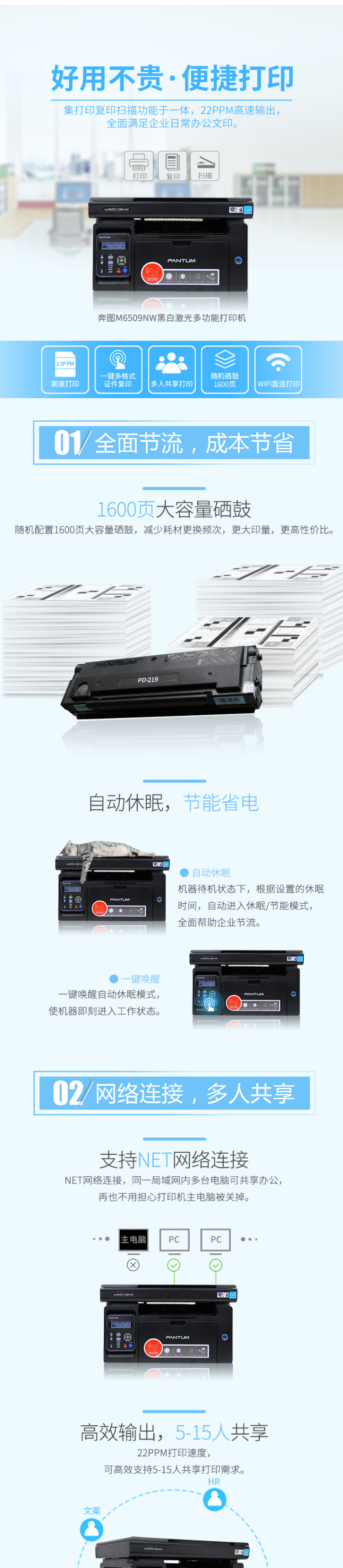 • 奔图(PANTUM)M6509NW 黑白多功能一体机