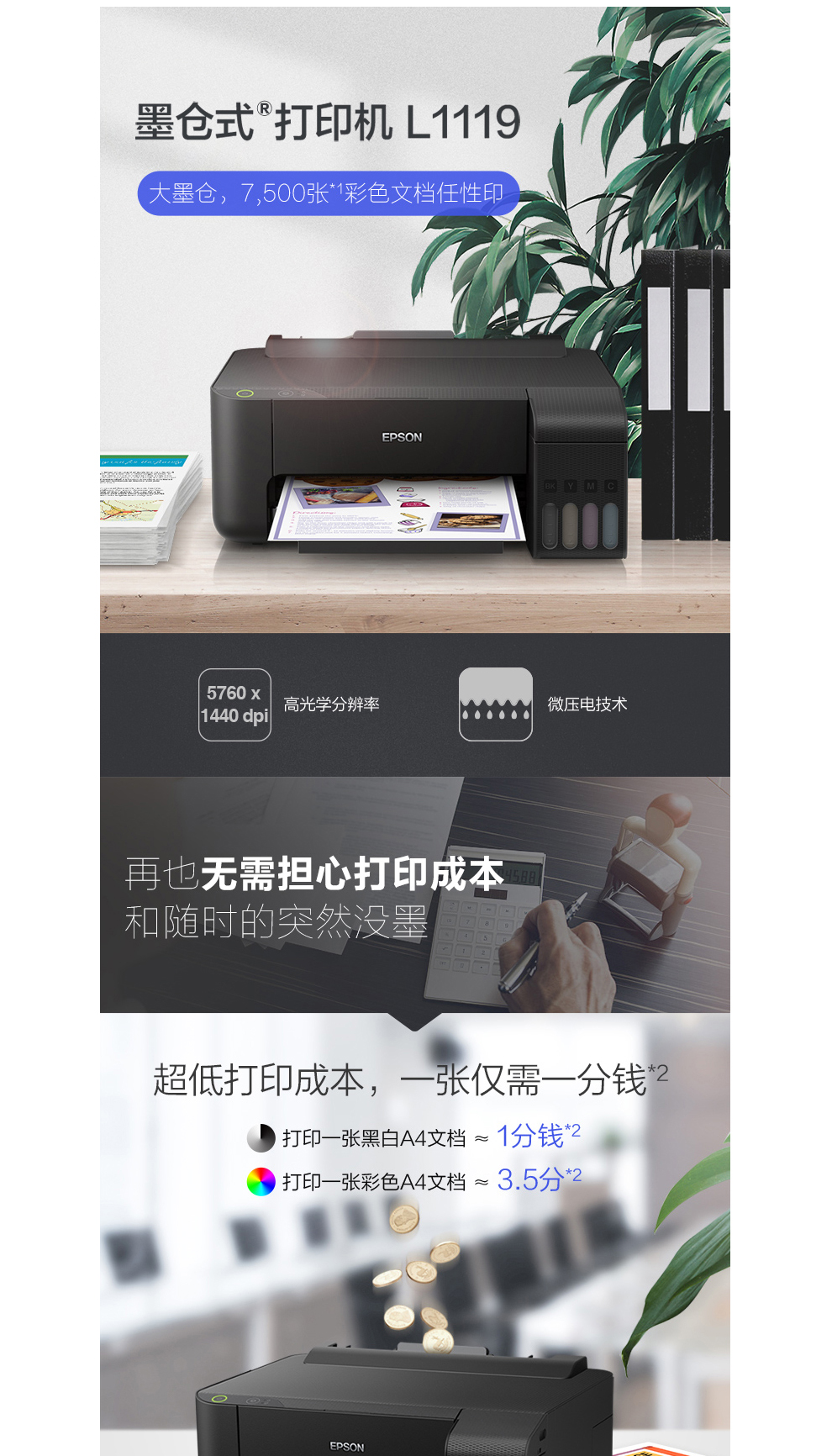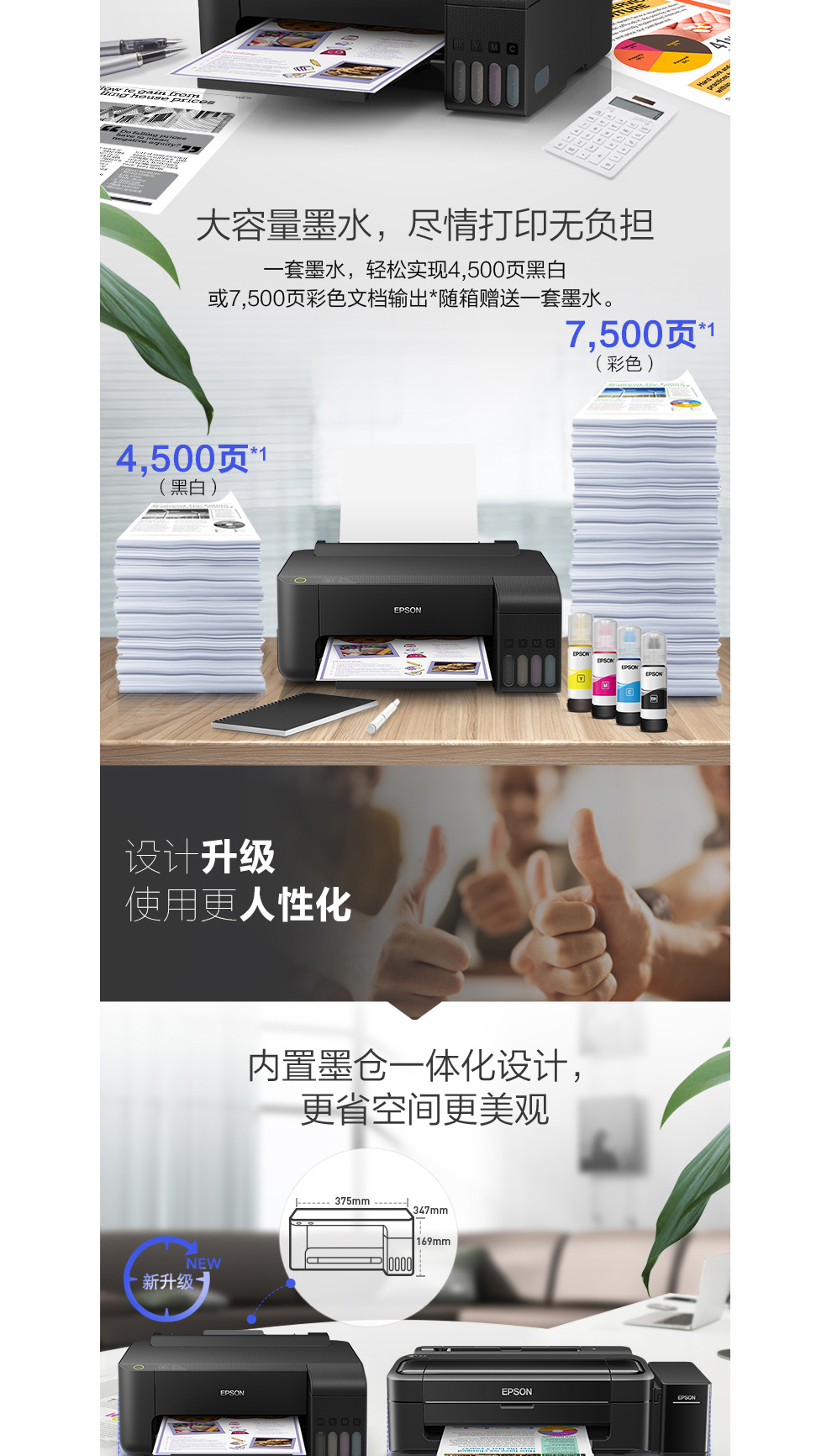 爱普生(EPSON)L1218_1259 墨仓式连供家用彩色喷墨 学生作业打印 L310_L313 L1118(标配)+原装墨水1套