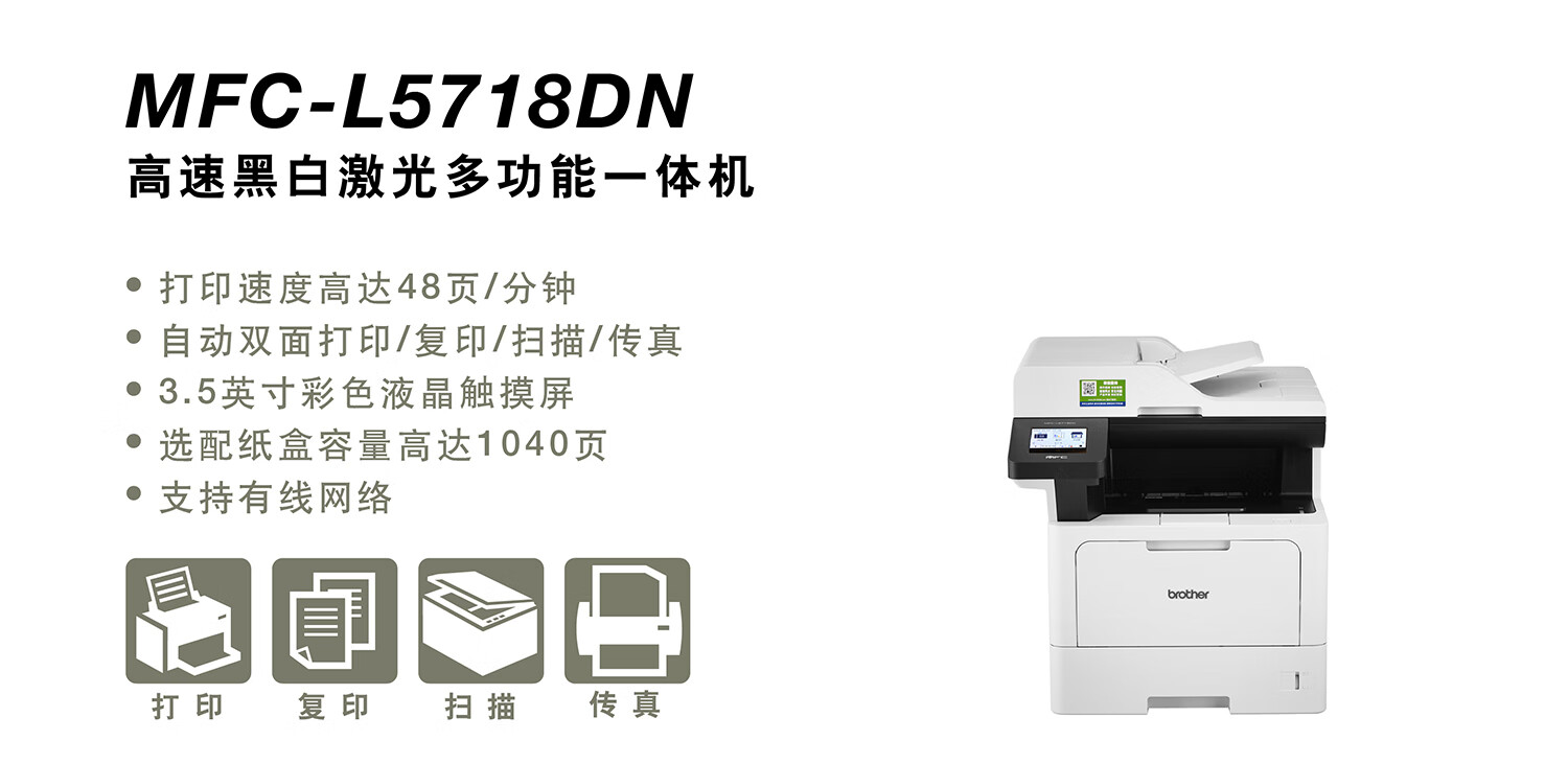 • 兄弟MFC-L5718DN高速黑白激光多功能一体机 打印复印扫描传真 有线网络打印 双面打印 MFC-L5718DN标配
